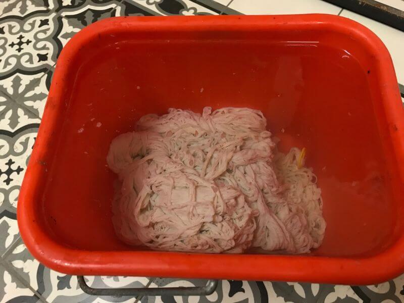 Preservation by drying. The cleaned, fresh casings are hung onto drying racks.